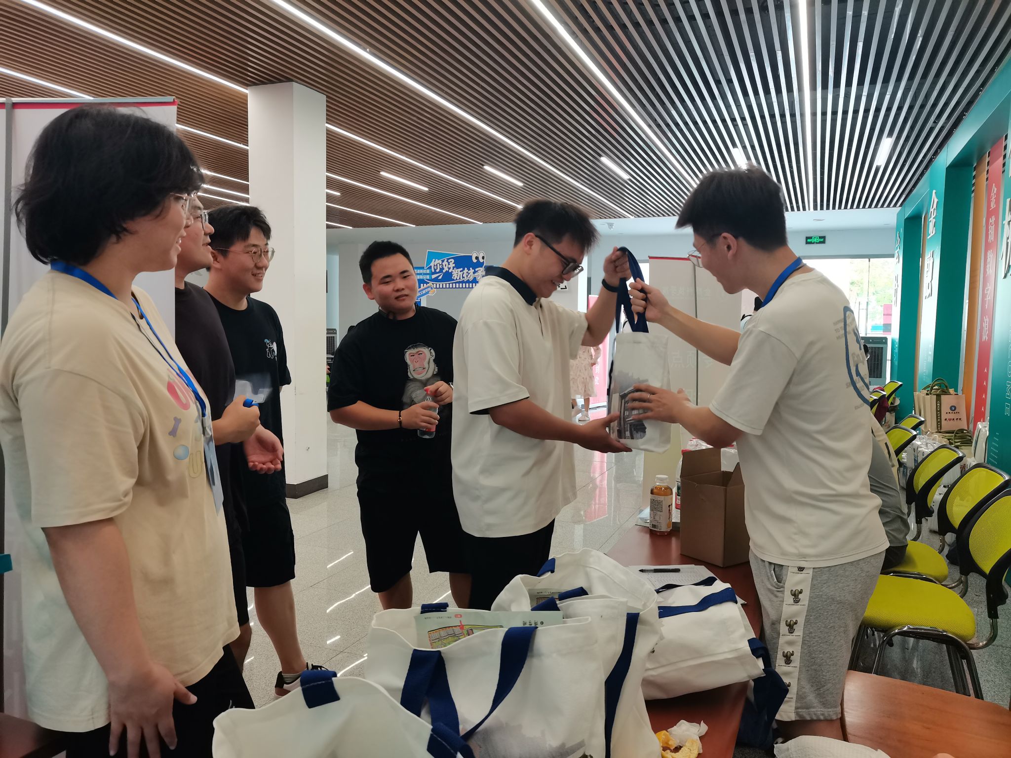 报到现场,学校及学院领导与新生亲切交谈,鼓励大家尽快适应角色转变,积极参与导师的科研项目,在专业领域深耕细作。学院特意为新生准备了入学大礼包,由高年级的研究生学长学姐亲手发放,大家在报到现场热烈交流,分享科研入门经验等“干货”,帮助初到金科校园的研究生新生放下陌生感,尽快适应新环境。