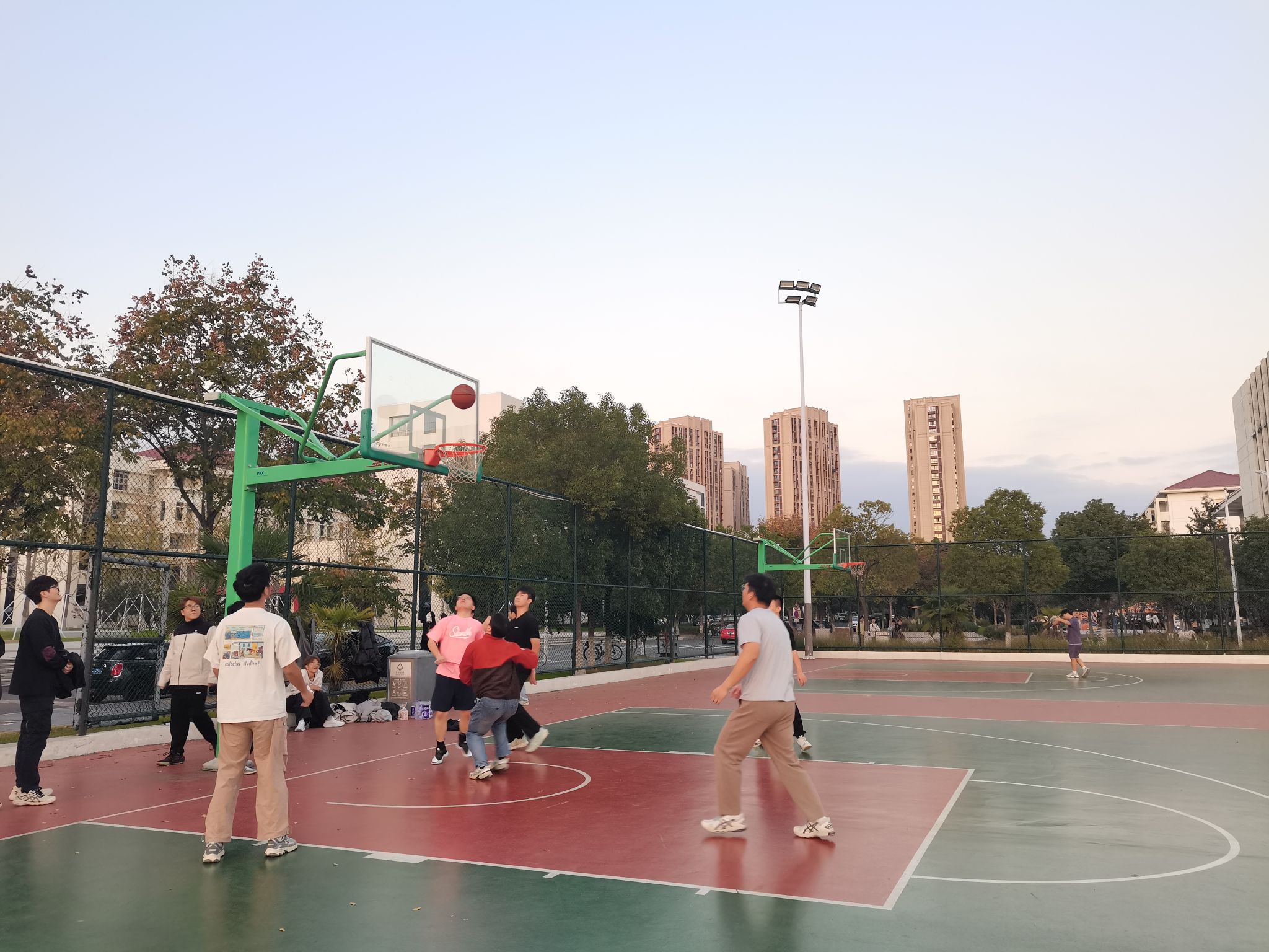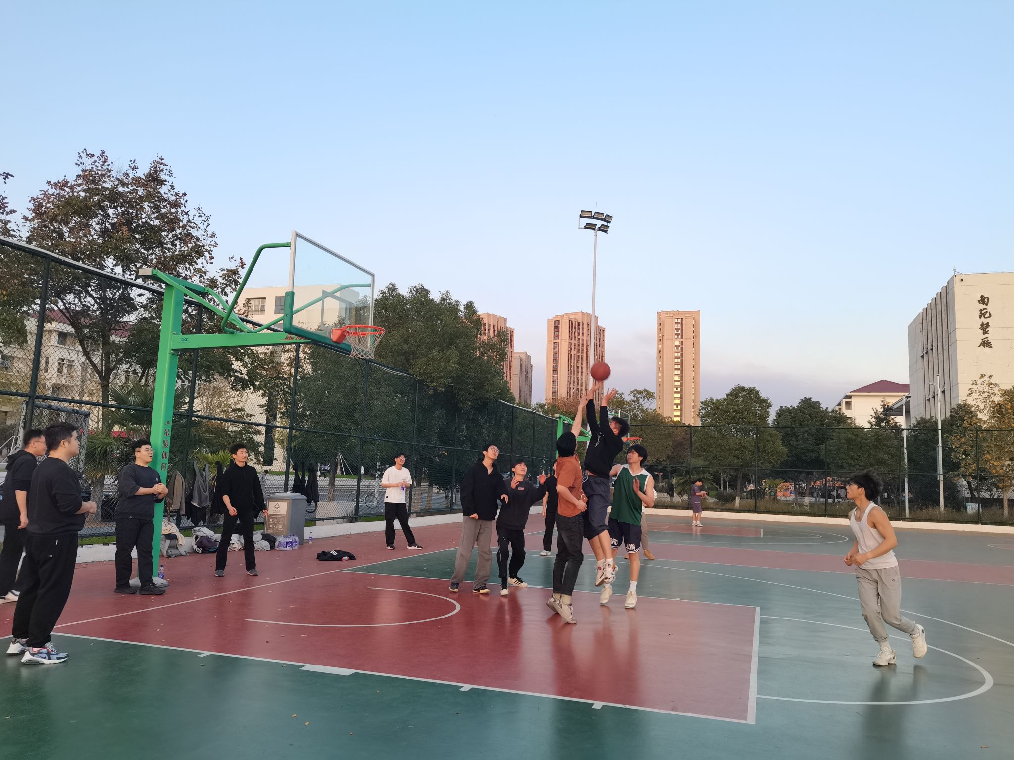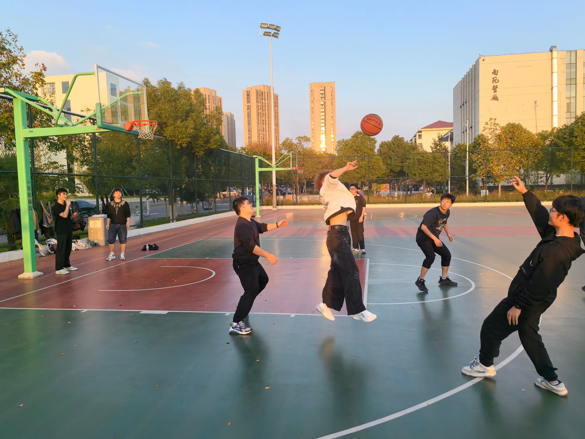 赛场上,同学们姿态矫健、精神振奋。跃起封盖的身影如钢结构般挺拔,急速变向的突破似流体力学般流畅,每一次运球、传球与投篮都彰显团队协作的默契。呐喊与欢呼此起彼伏,科研团队同学间的相互支持为比赛增添了独特氛围。