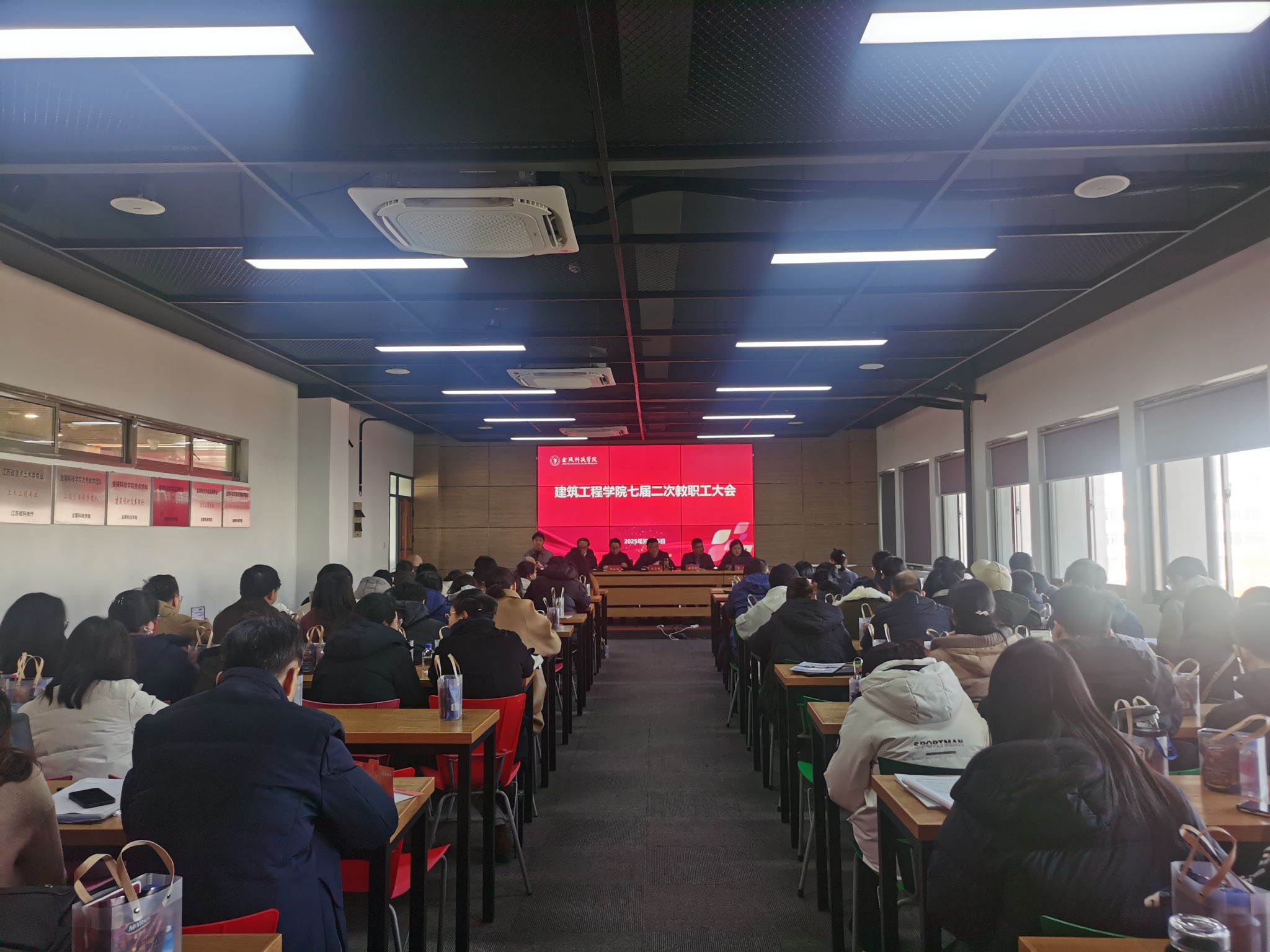 2025年1月15,建筑工程学成功召开七届二次教职工大会。学院领导班子及全院教职工参加了本次会议,会议由学院分工会主席鲁瑶主持。
