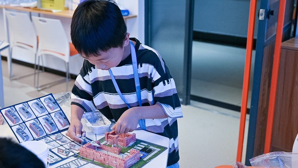 626日上午,学院举办了“小小建筑师——手工搭建水泥砖瓦小屋”活动,一砖一瓦一个家,仿真砖瓦,玩出创意,小小建筑师,实现造房梦。端木家暐老师细心讲解从一块块零散的砖瓦,到一座座小房子的建成,孩子们在“施工过程”中体验建造的真实感。