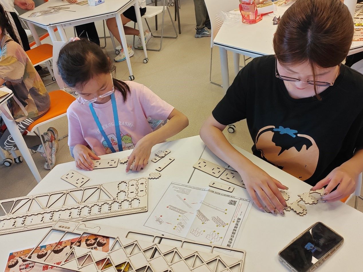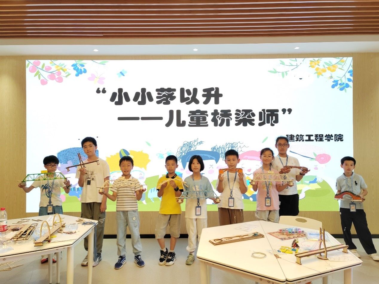 627日上午,学院举办了“小小桥梁师——手工搭建桥梁”活动。一种桥梁,一个梦想。钱霞老师带着小朋友们认识拱桥、悬索桥、斜拉桥、钢桁架桥,了解桥梁故事。从一根根零散的竹棍,一片片细碎的木片,到一座座形态各异,志愿者们悉心地指导孩子们搭建加载,完成了各有千秋的桥梁,孩子们收货了满满的成就感。