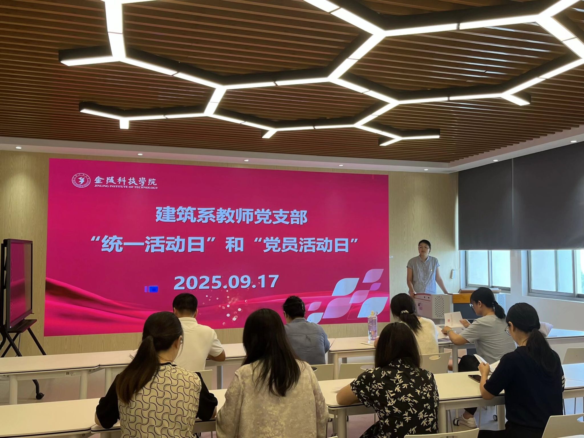各支部党员集中学习了习近平总书记近期重要讲话和指示批示精神,深入学习了习近平总书记近期发表的重要文章。重点学习了《习近平作出重要指示强调 锲而不舍落实中央八项规定精神 推进作风建设常态化长效化》,《习近平:弘扬伟大抗战精神,向着中华民族伟大复兴的光辉彼岸奋勇前进》。做好深入贯彻中央八项规定精神学习教育总结工作,各党支部对本支部开展深入贯彻中央八项规定精神学习教育工作进行总结,分析本支部开展学习教育的做法、成效、经验和存在问题。各支部按要求组织观看《八秩荣光——江苏抗日根据地共产党人》专题教育片。深入学习贯彻习近平总书记关于宗教工作的重要论述、重要讲话和重要指示批示精神及《宗教事务条例》等宗教政策法规,认真学习《中国共产党纪律处分条例》、《中国共产党党章》、《中国共产党普通高等学校基层组织工作条例》等相关制度。杨如丽书记旁听了建筑系教师党支部和工管地下系教师党支部。之后,各党支部结合工作实际开展针对性活动。
