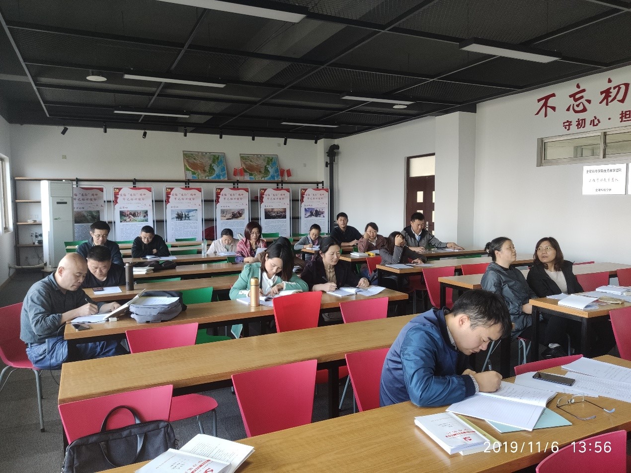 首先,各师生党支部根据党支部学习计划组织党员继续学习了《习近平关于“不忘初心、牢记使命”论述摘编》、《习近平新时代中国特色社会主义思想学习纲要》。各支部组织党员学习了《中国共产党普通高等学校基层组织工作条例》,组织党员观看了《十九大党章知识精粹》系列微动漫。其次,各师生党支部开展了“亮承诺”活动,每名党员结合自身工作亮出承诺,并宣读了自己党员工作责任区。最后,各支部组织党员围绕“初心是什么、使命干什么、奋斗比什么”主题,结合学校深入解放思想“对标找差、创新实干”推动高质量发展开展“三问”讨论,党员们纷纷表示,要认真学习贯彻习近平新时代中国特色社会主义思想,增强“四个意识”,坚定“四个自信”,坚决做到“两个维护”,自觉向榜样学习,为学院学校的发展作出自己应有的贡献。