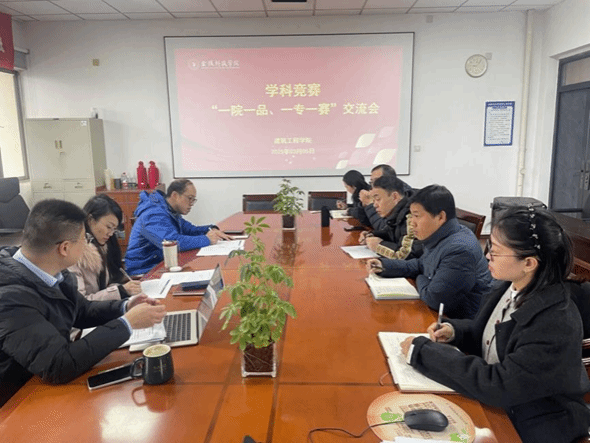 在工科楼B502会议室召开学科竞赛“一院一品、一专一赛”工程交流会。教务处副处长张文妍、学院副书记郑庆秋、学院督导组组长孙萍、“一院一品”项目指导教师周衍涛、李圆、钱霞,辅导员鲍飞豹、鲁瑶参会,会议由学院教学副院长黄冬辉主持。会议围绕学校学科竞赛工作建设要求,结合学院近年来在国家级学科竞赛中的成果与经验展开深入探讨,旨在推动“一院一品、一专一赛”工程高质量发展,强化应用型人才培养特色,助力高水平学科竞赛成果的规模化产出。