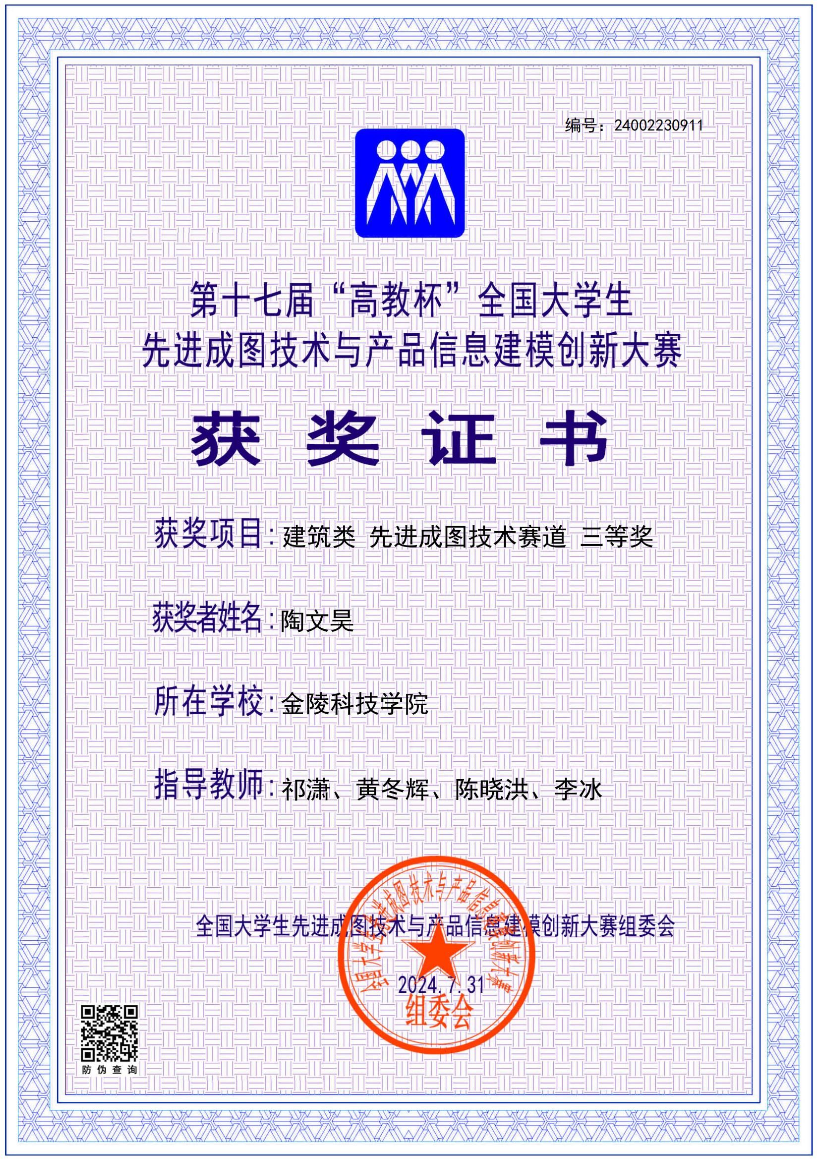 经过江苏省第四届大学生先进成图技术与产品信息建模创新大赛选拔,做爱自拍 共有6位同学参加2024 年7月27日举办的第十七届全国大学生先进成图技术与产品信息建模创新大赛。经过激烈角逐,土木工程专业周祎聪、陶文昊,建筑学专业韩鑫玉在本次大赛中分别荣获二等奖1项、三等奖2项的好成绩。