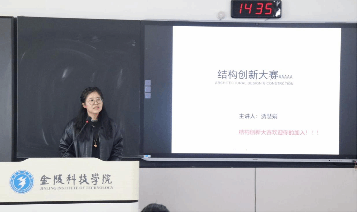 讲座伊始,结构创新竞赛负责指导教师贾慧娟凭借其丰富的行业经验与深厚的专业知识,深入浅出地讲解了建筑结构创新的核心要点,从新型材料的运用到前沿设计理念的剖析,内容丰富详实,为同学们打开了建筑结构创新世界的大门。通过展示一系列国内外极具创新性的建筑案例,如鸟巢、国家游泳中心,贾慧娟老师生动诠释了创新在建筑领域的无限可能,使抽象的创新概念变得直观可感。