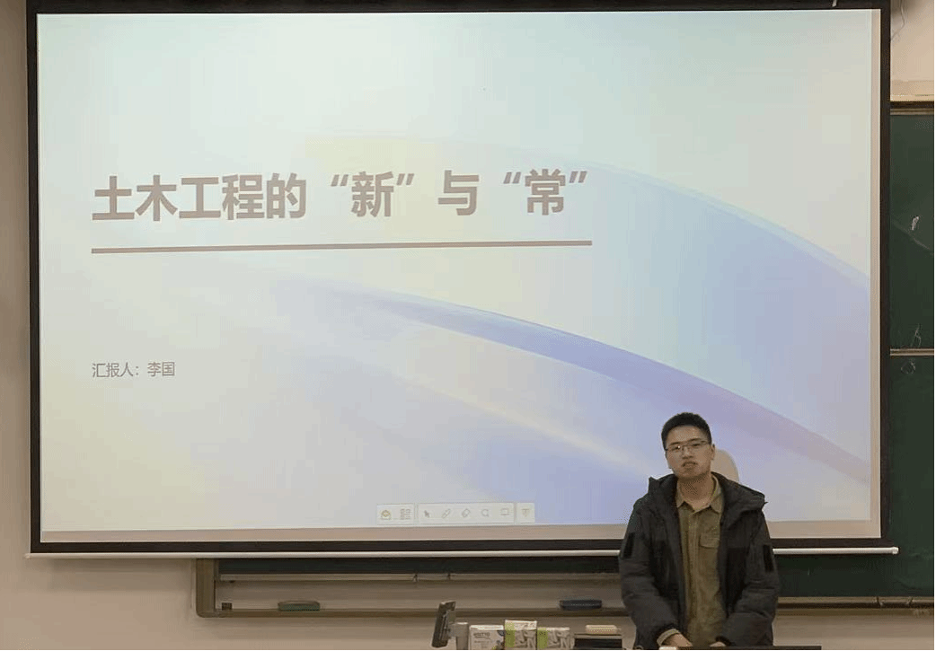 随后,青年教师杨来运博士以“一个刚毕业的博士青年教师对土木工程专业的想法浅谈”为题,从专业发展背景切入,梳理了1988年海南地产热潮、1997年香港金融风暴、2008年次贷危机等行业关键节点,结合学术视角解析专业的行业脉络,引导新生建立对土木工程专业的理性认知,激发大家的探索兴趣。