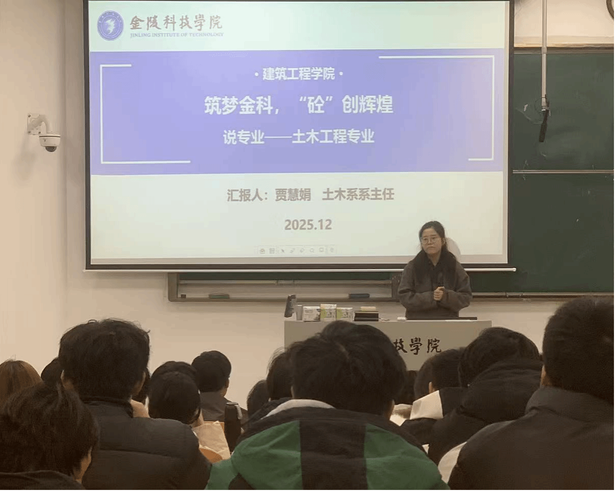 活动由土木系系主任贾慧娟主持并率先开讲,她以“筑梦金科,砼创辉煌”为主题,围绕专业概况、师资队伍、专业建设情况、科学研究成果、人才培养成效五大板块展开分享。贾老师深入浅出地阐释了土木工程专业的核心内涵与行业价值,介绍了专业高素质的师资团队、优质教学资源及丰硕的科研与人才培养成果,鼓励新生以积极心态投入学习,把握校园资源为职业发展筑牢根基。