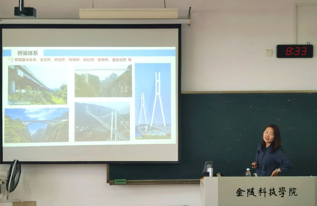 21级道路桥梁专业的学生进行授课。此次授课结合本科《桥梁工程》课程的重点,有针对性的讲授了“常规结构桥梁设计与计算”,实现了课堂理论教学与企业生产实践之间的融会衔接。