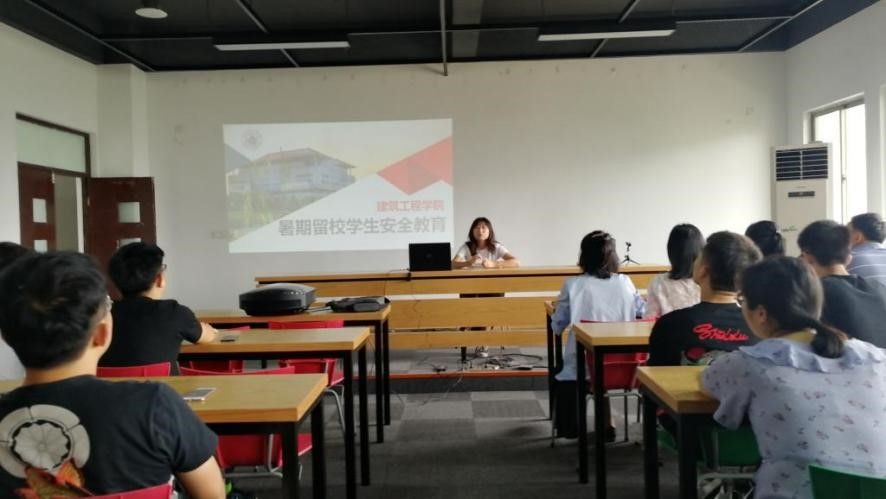 于7月8日在工科楼B513教室举办暑期留校学生安全教育会,全体辅导员及暑期申请留校全体学生参会。