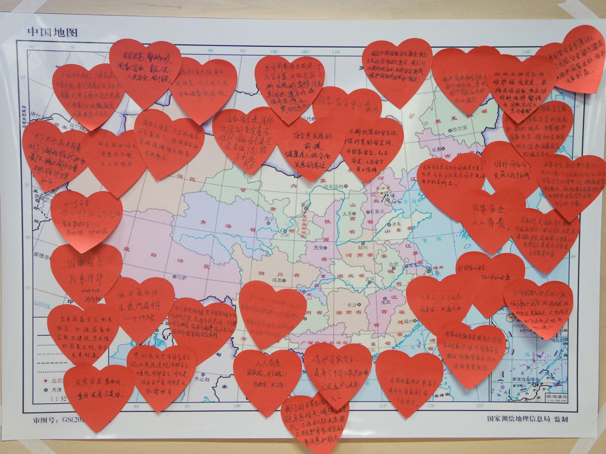 4月14日晚18:30,建工学院在工科楼B513组织学生党员开展“以吾辈青春,守盛世中华”特色活动,50余名学生党员认真观看了国家安全教育课,观看完毕后,学生党员们在便利贴上写下了对于总体国家安全观的认识和感悟,并将其一一粘贴在中国地图上,红色的便利贴承载着建工学子们自觉维护国家安全,坚决与危害国家安全的行为作斗争的青春誓言。