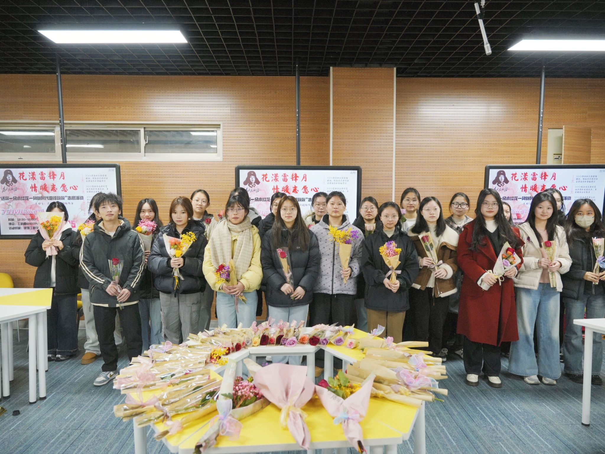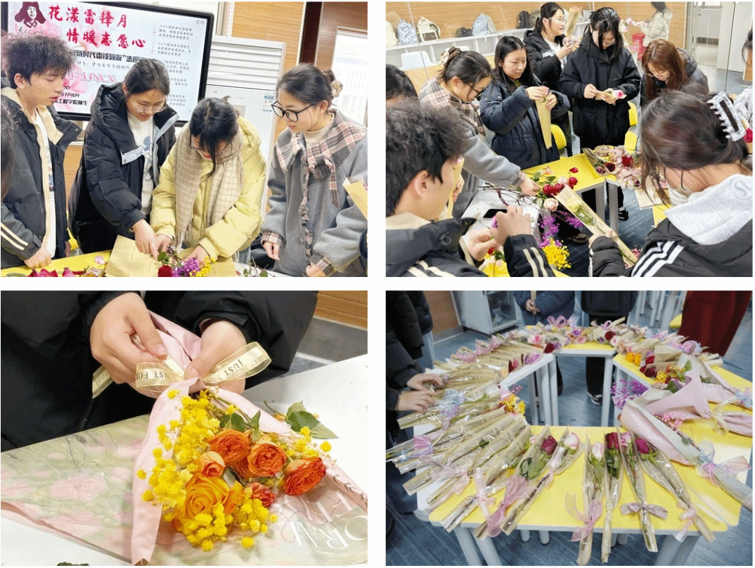 于2025年3月5日在知行楼B412 举办了“送你一朵小红花—向新时代的雷锋致敬”主题插花活动。本次活动以艺术创作与志愿服务相结合的形式,吸引众多师生参与,在花香与温情中诠释新时代雷锋精神的传承。