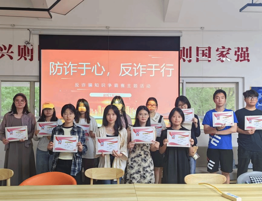 线下竞赛于工科楼513采用集中扫码答题的形式,参赛学生在指定时间内通过手机完成线上防诈骗知识测试。活动现场秩序井然,同学们认真作答,在竞赛中巩固了防诈骗知识。学院根据答题成绩评选出一、二、三等奖共计16名,并于4月19日在南08一站式服务社区为获奖同学颁发荣誉证书。
