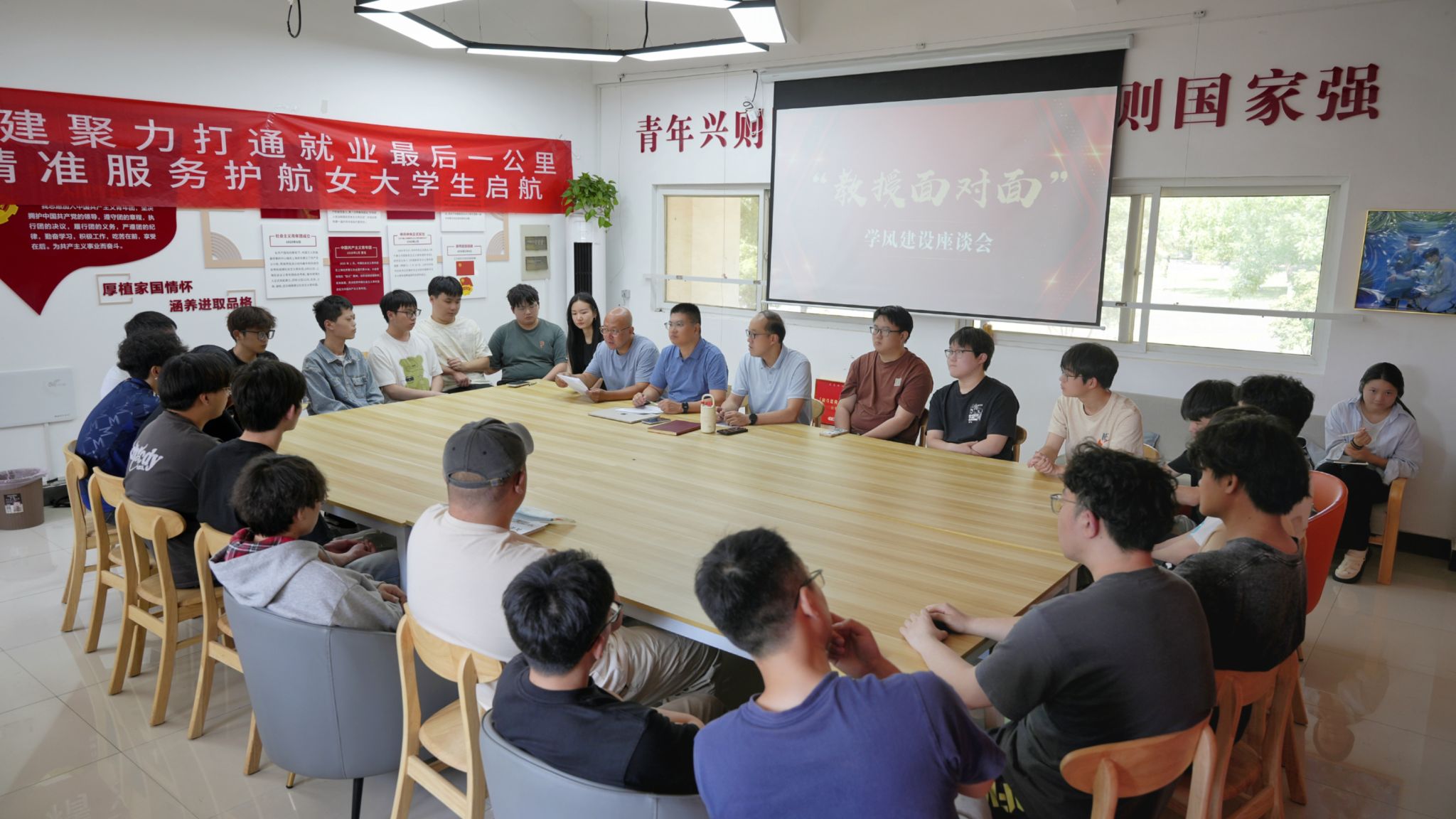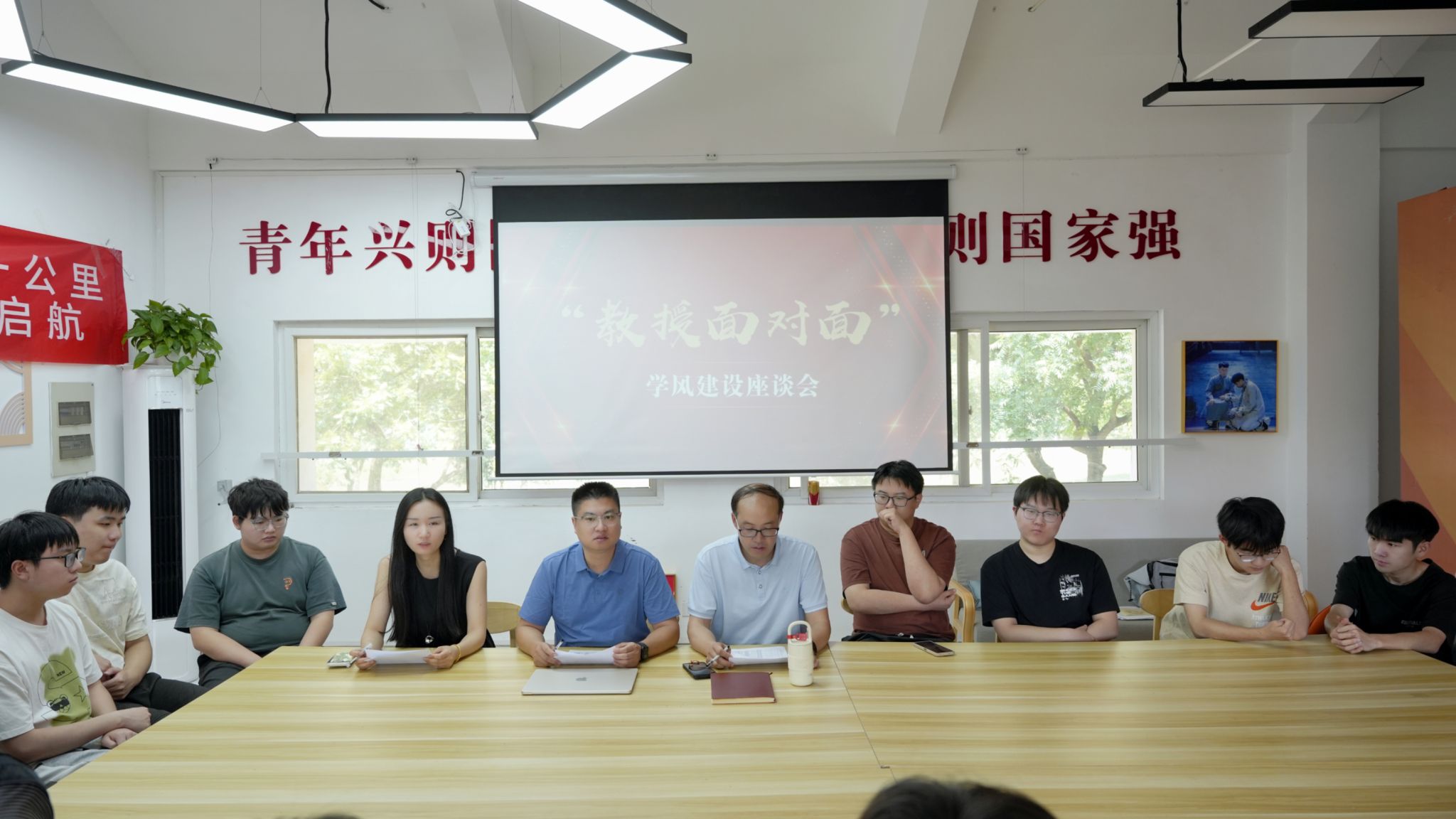 于5月29日在南区08栋“一站式”学生社区举办“教授面对面”学风建设座谈会。学院党委副书记郑庆秋、副院长黄冬辉、教务臧靖、辅导员濮香玉以及22级学生参与。