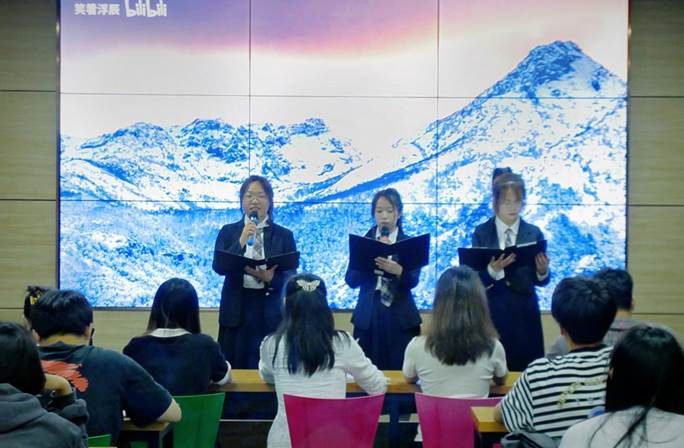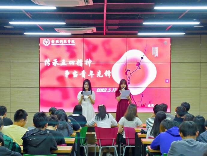 团总支在工科楼B513举办了主题为“传承五四精神,争当青年先锋”的红色经典朗诵比赛。