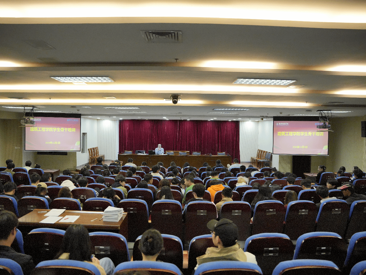 在图书馆第二报告厅举办学生干部培训,培训由学院党委副书记郑庆秋主讲,各年级学生干部参加。