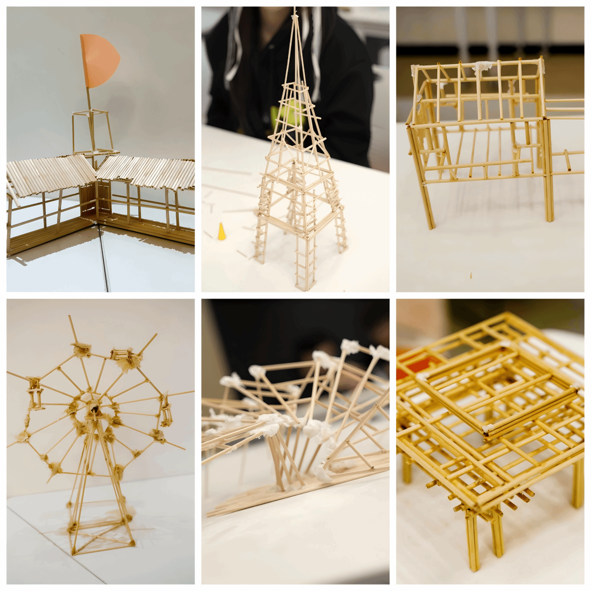 科普运动会以“你猜我画”、“抽积木”、“鲨口逃脱”、“一百米趣味接力”和“搭建大赛”等项目为主,将建筑知识融入趣味游戏中。活动现场气氛热烈,同学们在欢声笑语中学习建筑知识,体验团队合作的力量。在“抽积木”比赛中,即使队伍面临困境,同学们也展现出坚持的品质,最终取得成功。在“鲨口逃脱”项目中,同学们则展现出智慧和运气并存的实力。“搭建大赛”分为设计图纸提交和现场搭建两个阶段。经过第一阶段严格评选,六组优秀设计脱颖而出进入现场搭建阶段。第二阶段,六组同学以团队为单位将设计图纸变为现实,展现出卓越的创新思维和动手能力。评委们从美观性、完成度和创新性等多方面综合考量,评选出一等奖1名,二等奖2名,三等奖3名。在活动中,同学们经历了从理论到实践的完整过程,不仅体会到了建筑的魅力,更在挑战中收获了成长。