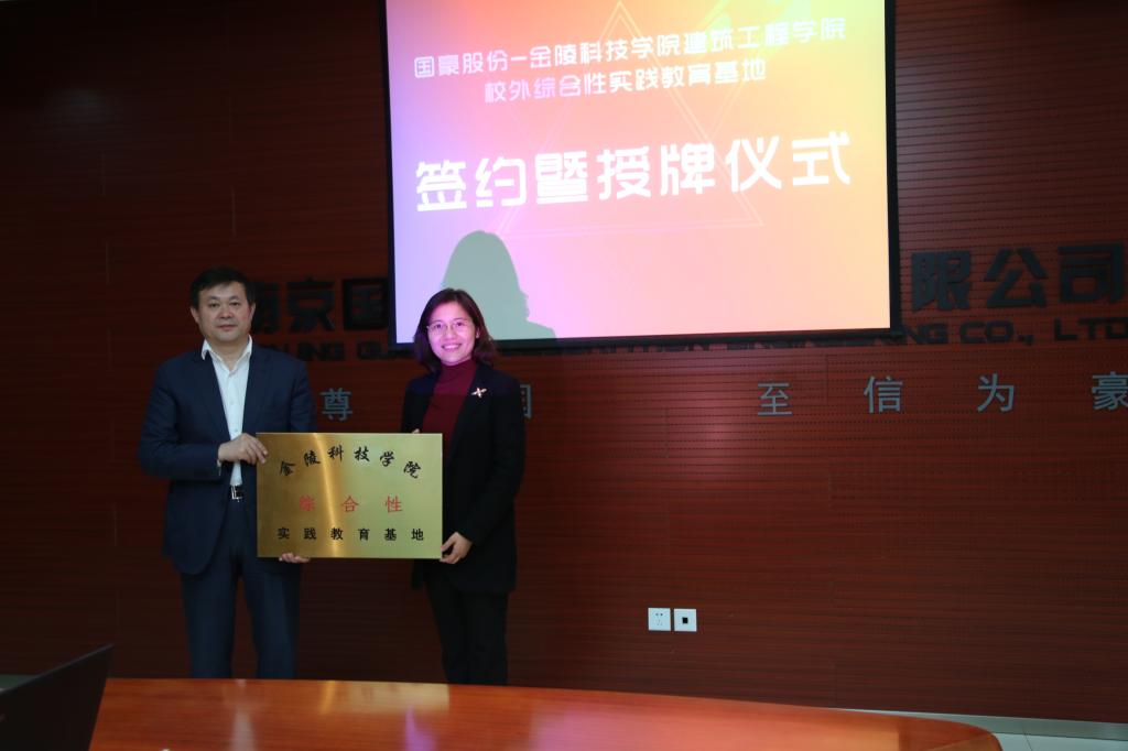 党总支部书记沈瑾,土木工程专业系主任薛涛、就业干事鲍飞豹一行赴南京国豪装饰安装工程股份有限公司参观调研。南京国豪装饰安装工程股份有限公司董事长顾兵,董事、总经理高磊,人力总监李丹,招聘经理马洪磊热情接待了沈瑾书记一行。