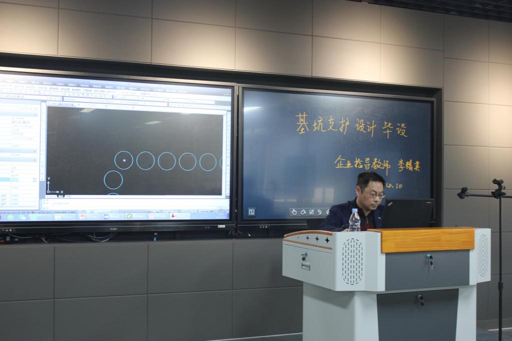 李老师具有丰富的工程设计经验,他结合自己在企业对新进职员的技术培训要求,给学生分享了如何积极主动思考、全力以赴投入、虚心请教前辈、耐心细致指导,把本科生毕业设计工作与未来工岗位上的学术成长相结合,专业素养与工程伦理相结合。李老师针对基坑支护设计过程中,碰到的支护嵌固深度、支撑布设,图件绘制等细节和难点分多个主题给学生作了详细的讲解和演示。与会学生纷纷表示受益匪浅,学到了很多宝贵的经验,也明白了优秀毕业设计是如何炼成的。