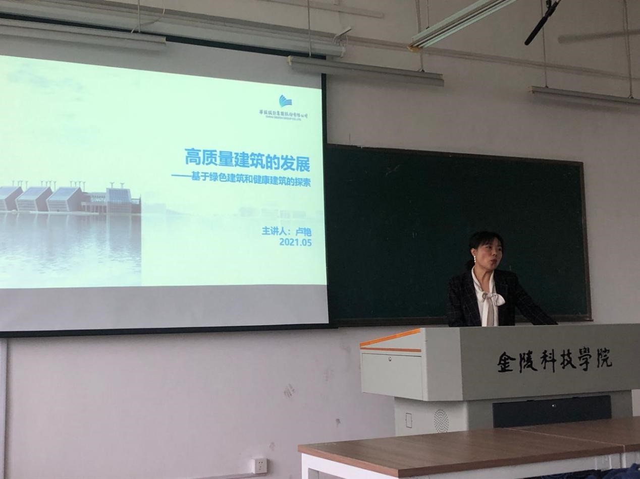 5月11日上午,华设设计集团股份有限公司城建事业部副总建筑师卢艳为建筑学师生带来了关于一场建筑前沿的讲座《高质量建筑的发展----基于绿色建筑和健康建筑的探索》。