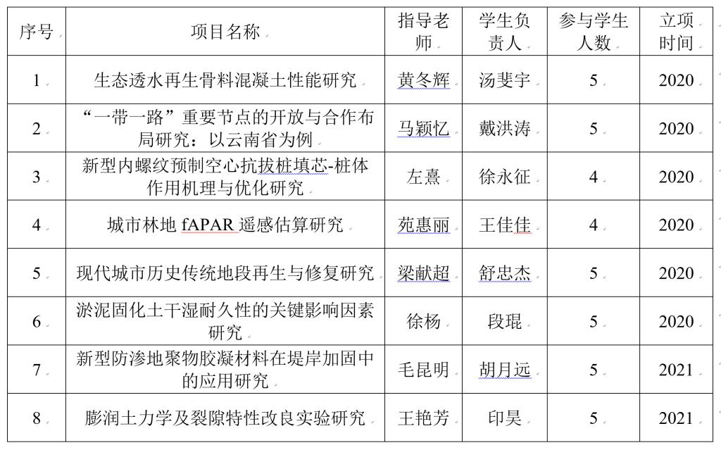 毛昆明老师负责的“新型防渗地聚物胶凝材料在堤岸加固中的应用研究”项目和王艳芳老师负责的“膨润土力学及裂隙特性改良实验研究”项目获评立项。