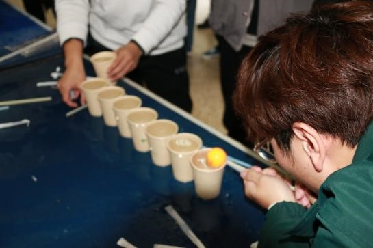 科普运动会如期举行。场地中早早聚集了参赛人员和到场准备的志愿者,虽然秋意逼人,但寒冷没有减少同学们心中的热情,相互之间激烈的讨论使现场气氛非常活跃!比赛场地被划分为了不同的比赛区域——搭积木、吹乒乓球、踢毽子。每一项比赛都是智力和体力的比拼,需要组内的成员进行合理分工,共同参与完成。