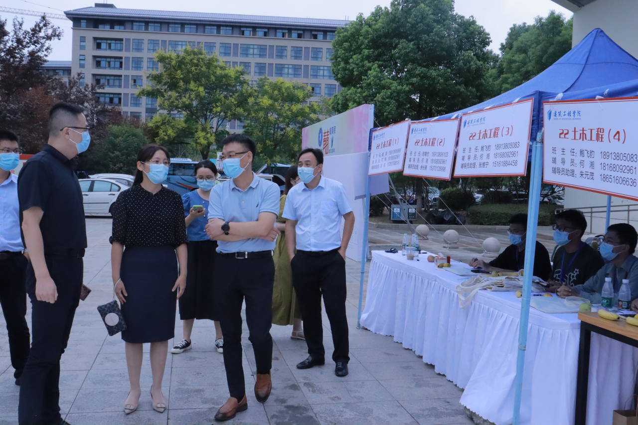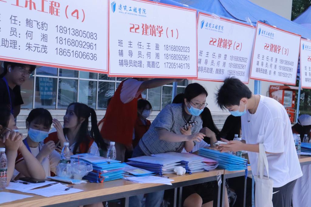学院党委书记沈瑾、院长刘志峰等院领导来到报到现场了解迎新工作准备情况,与新同学亲切交谈,希望他们尽快适应大学生活,做好学习规划,养成良好生活习惯,刻苦学习,成为祖国的栋梁之材。