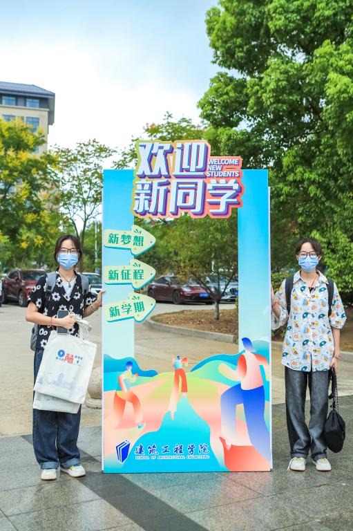 萌新们开启了大学生活的新征程,他们怀着激动的心情纷纷在学院精心准备的迎新背景墙前合影留念。