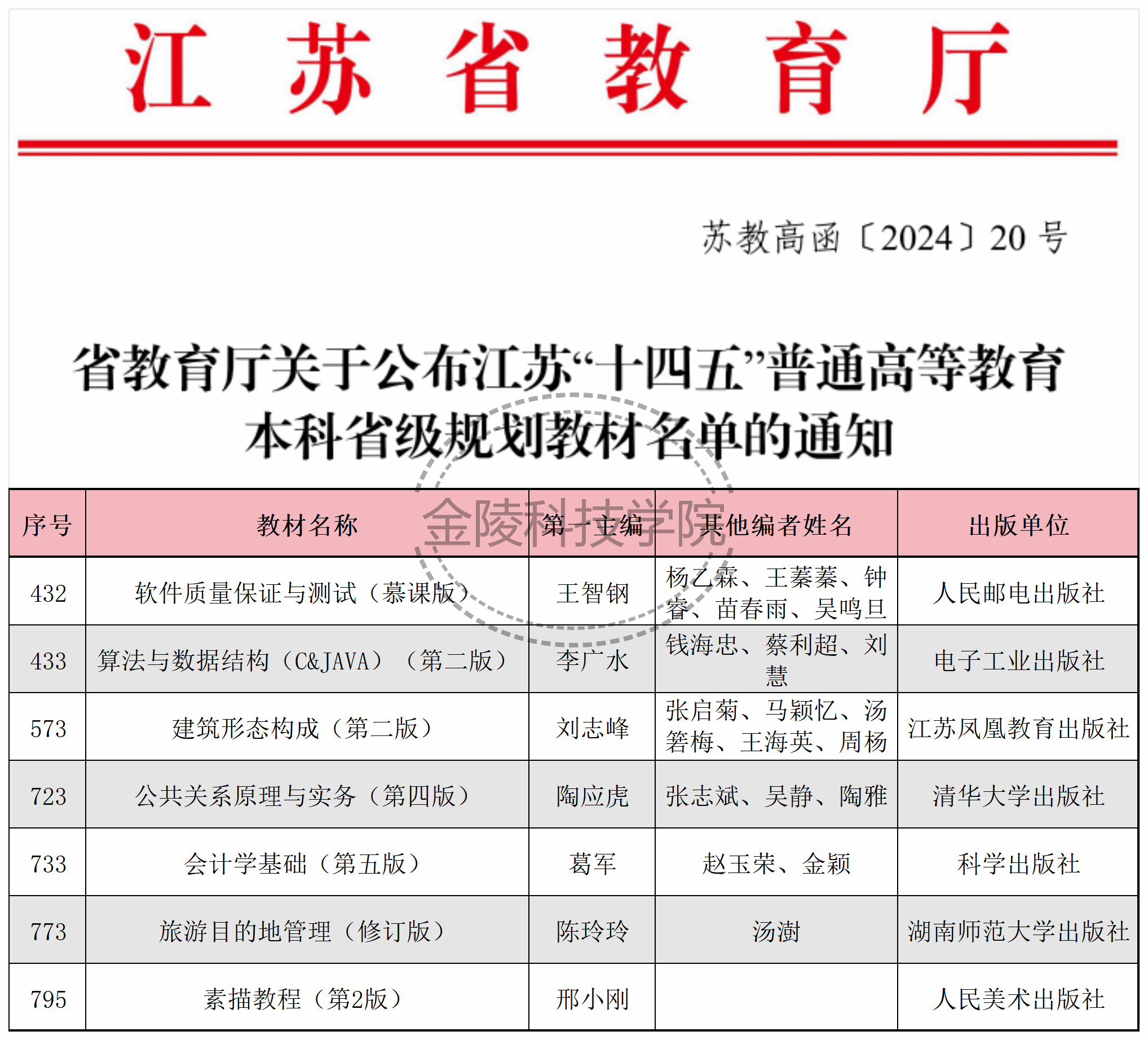 近日,江苏省教育厅发布《省教育厅关于公布江苏“十四五”普通高等教育本科省级规划教材名单的通知》(苏教高函〔2024〕20号),做爱自拍