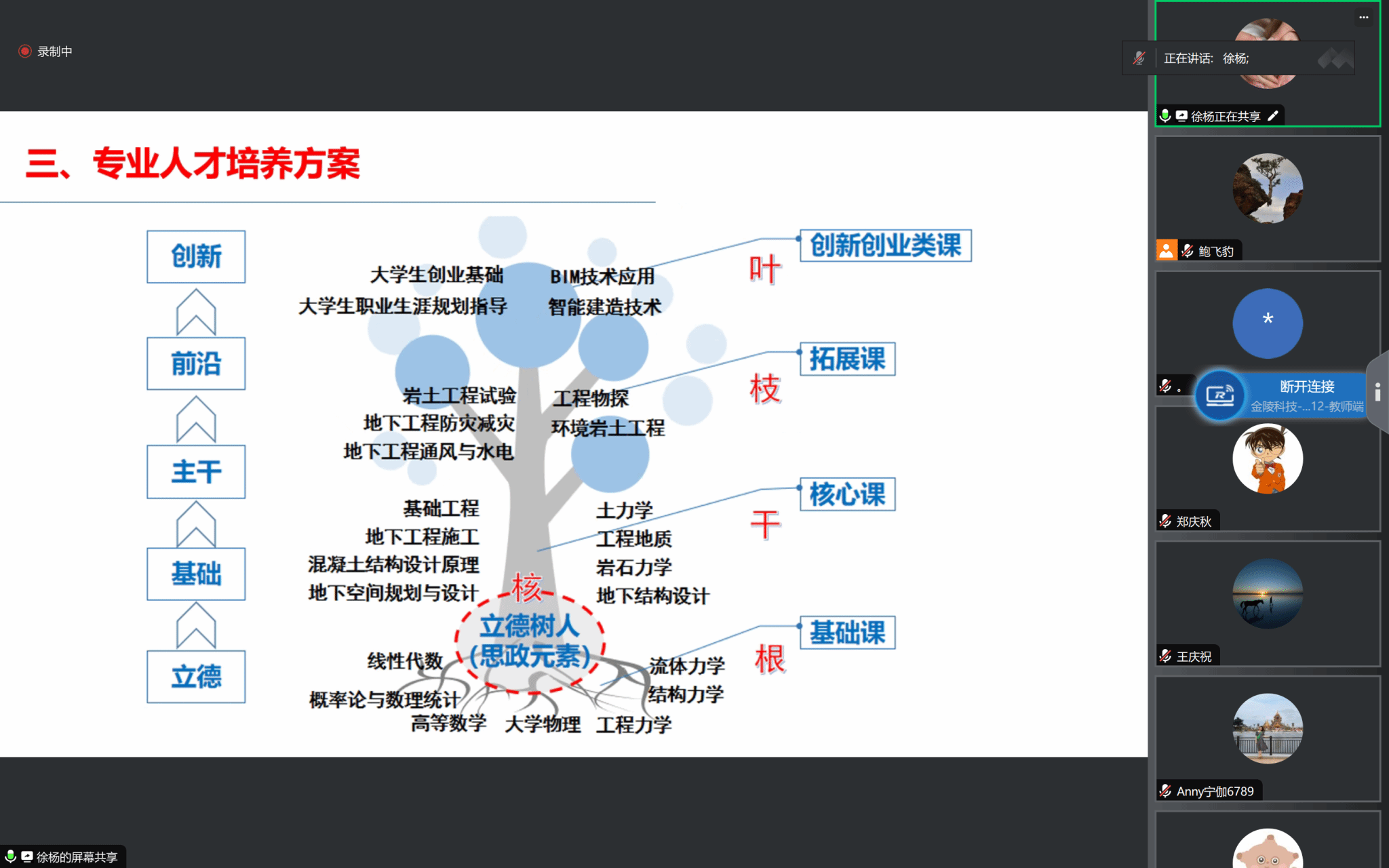 最后,城市地下空间工程系徐杨主任围绕培养目标、毕业要求、课程体系和教学计划进程安排等内容对专业人才培养方案进行了解读分析,进一步强调了人才培养方案在人才培养质量提升中的纲领作用。