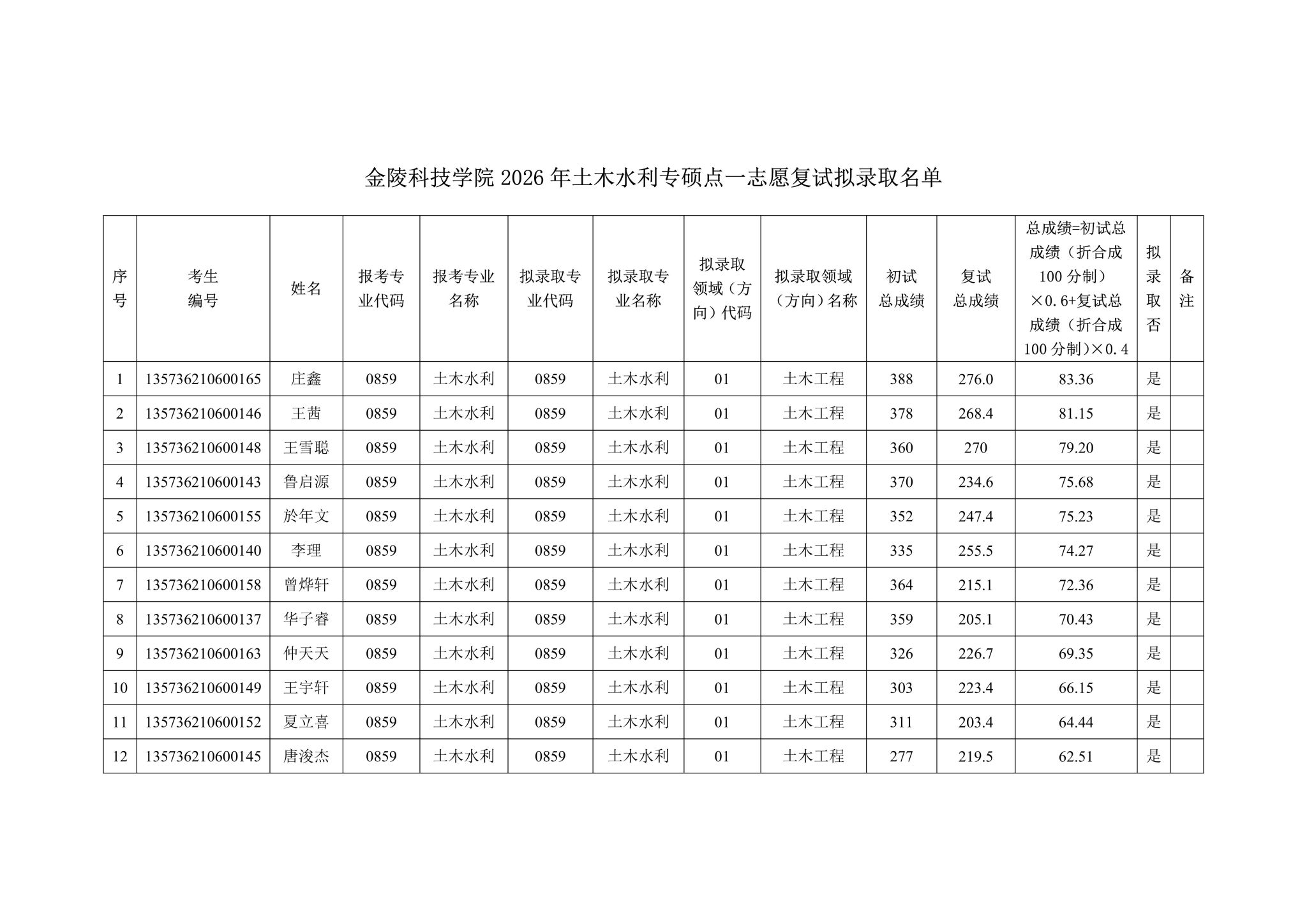 附:做爱自拍 2026年土木水利专硕点一志愿复试拟录取名单